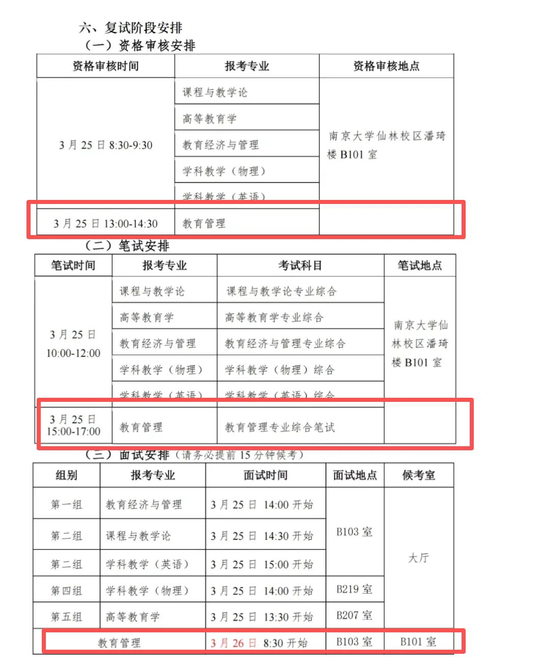 一、2025 年南京大学教育管理(非全)复试流程(现场复试)