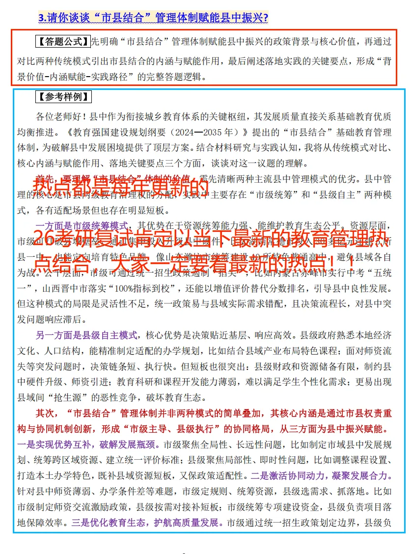 教育管理热点关注:关注教育领域的热点问题,如教育强国建设、双减政策、教育数字化、学校治理等,结合教育管理理论进行分析,准备“是什么-为什么-怎么办”的逻辑链条。