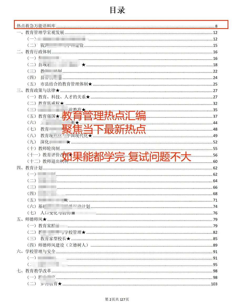 参考书目:教育管理领域的经典教材、教育政策文件等。