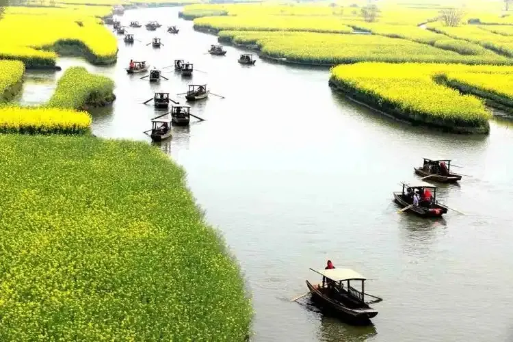 早餐后可游览【兴化千垛油菜花】(船票60/人必消)春天是一幅万物复苏的画卷。无论是破土而出的,还是含苞待放的,都可以在这个季节孕育。一大片金黄金黄的花海——千垛景区的油菜花,相信大家都耐不住对油菜花海的向往,迫不及待要感受花海之美了吧!千垛景区又称:千岛菜花。是全球重要农业文化遗产,江苏省四星级乡村旅游点。千垛景区以“垛田”特色地貌享誉全球。备注:千垛油菜花花期受自然气候影响,每年略有差异。我社行程安排基于往期数据,力求最佳观赏效果。若遇极端天气导致花况不佳,敬请理解!