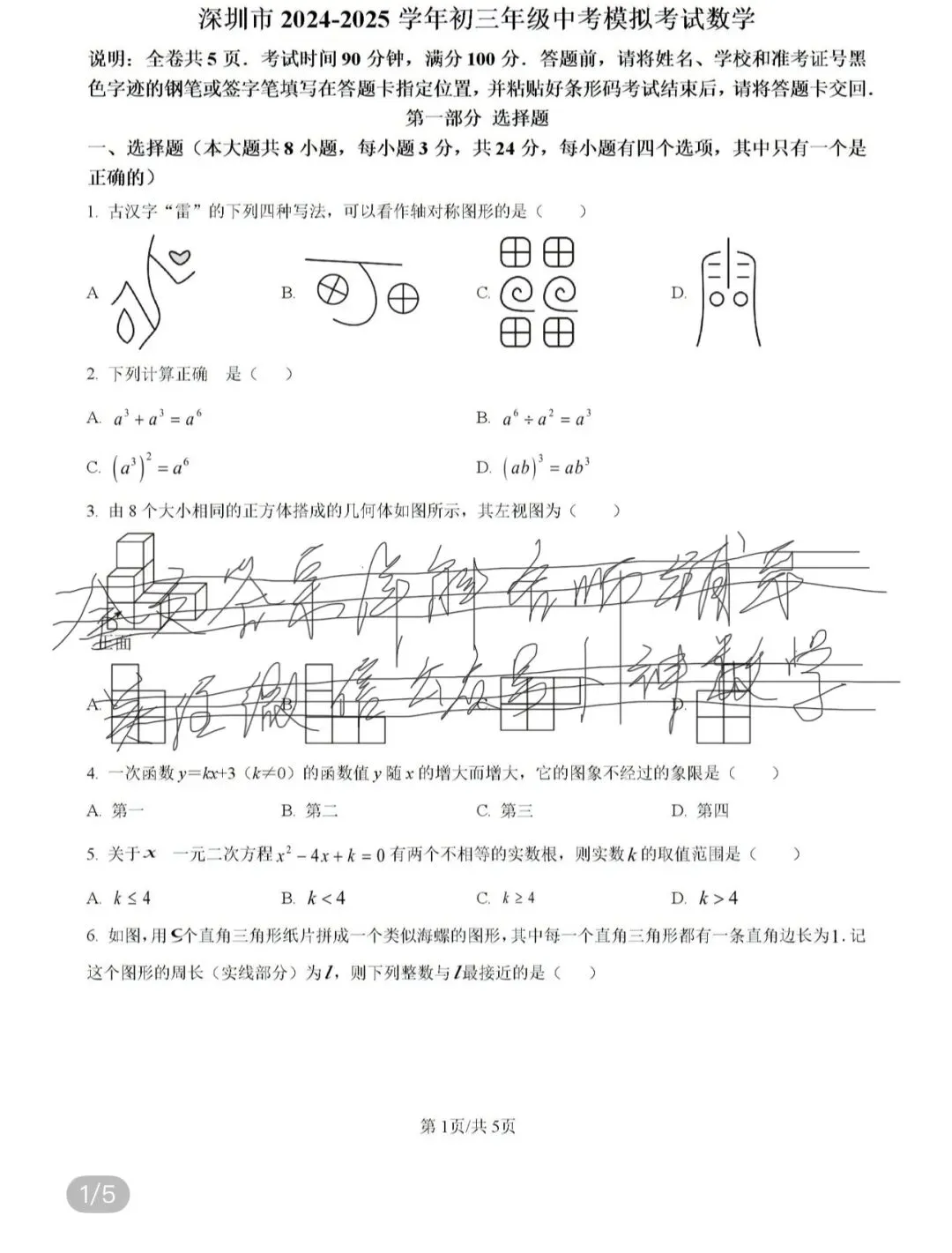 广东省深圳市罗湖区部分学校2025学年下学期九年级4月中考模拟考试数学试卷