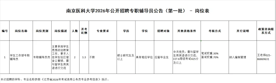 1.南京医科大学学生工作部负责回答此次招聘岗位咨询。