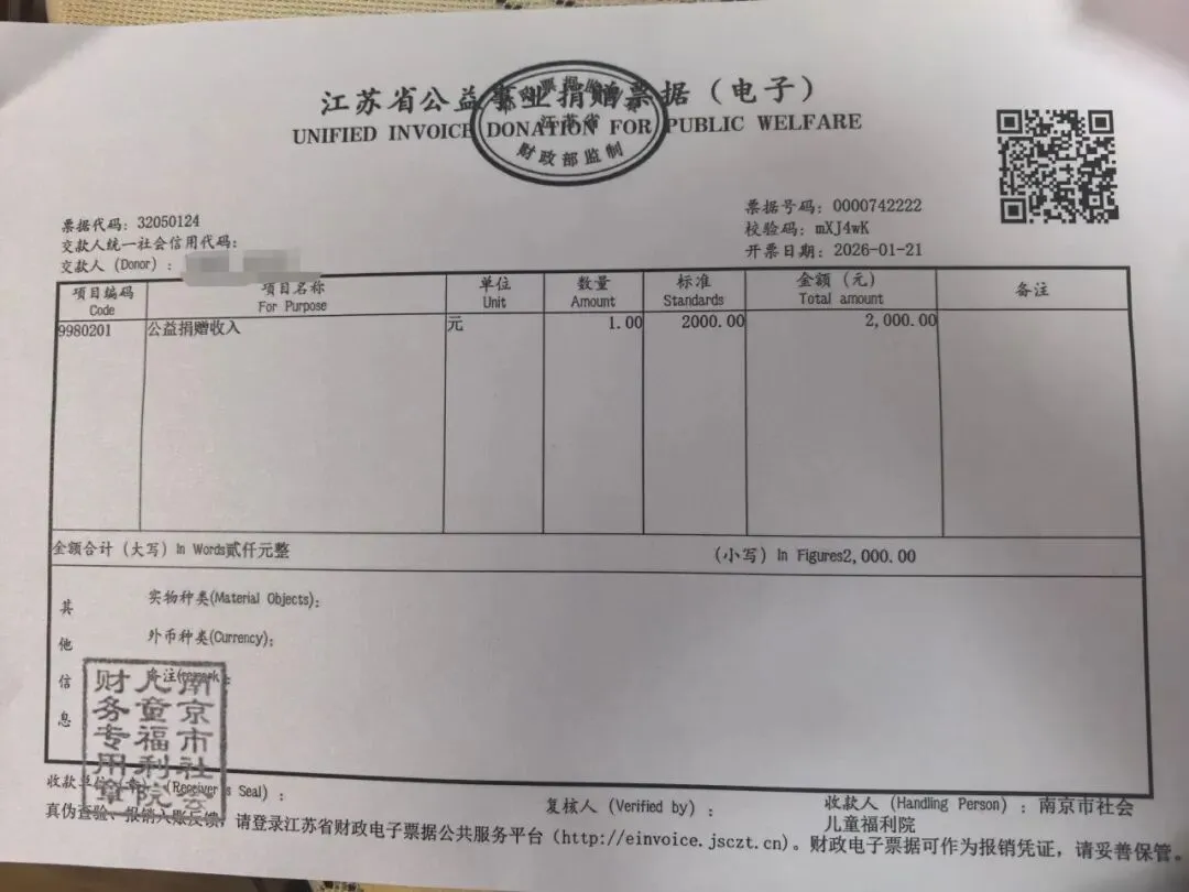2026年1月21日,胡先生在儿子的陪伴下,驱车来到了南京市社会儿童福利院。