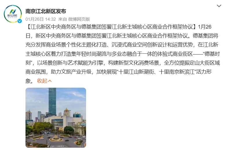 1月23日,德基集团与夫子庙片区文商旅融合发展战略合作签约,将打造“文化+商业+旅游”融合发展的业界标杆。