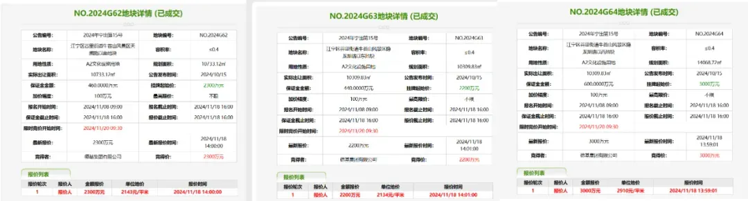 G62、63、64三块文化设施用地,被德基分别以2300万、2200万、3000万拿下。