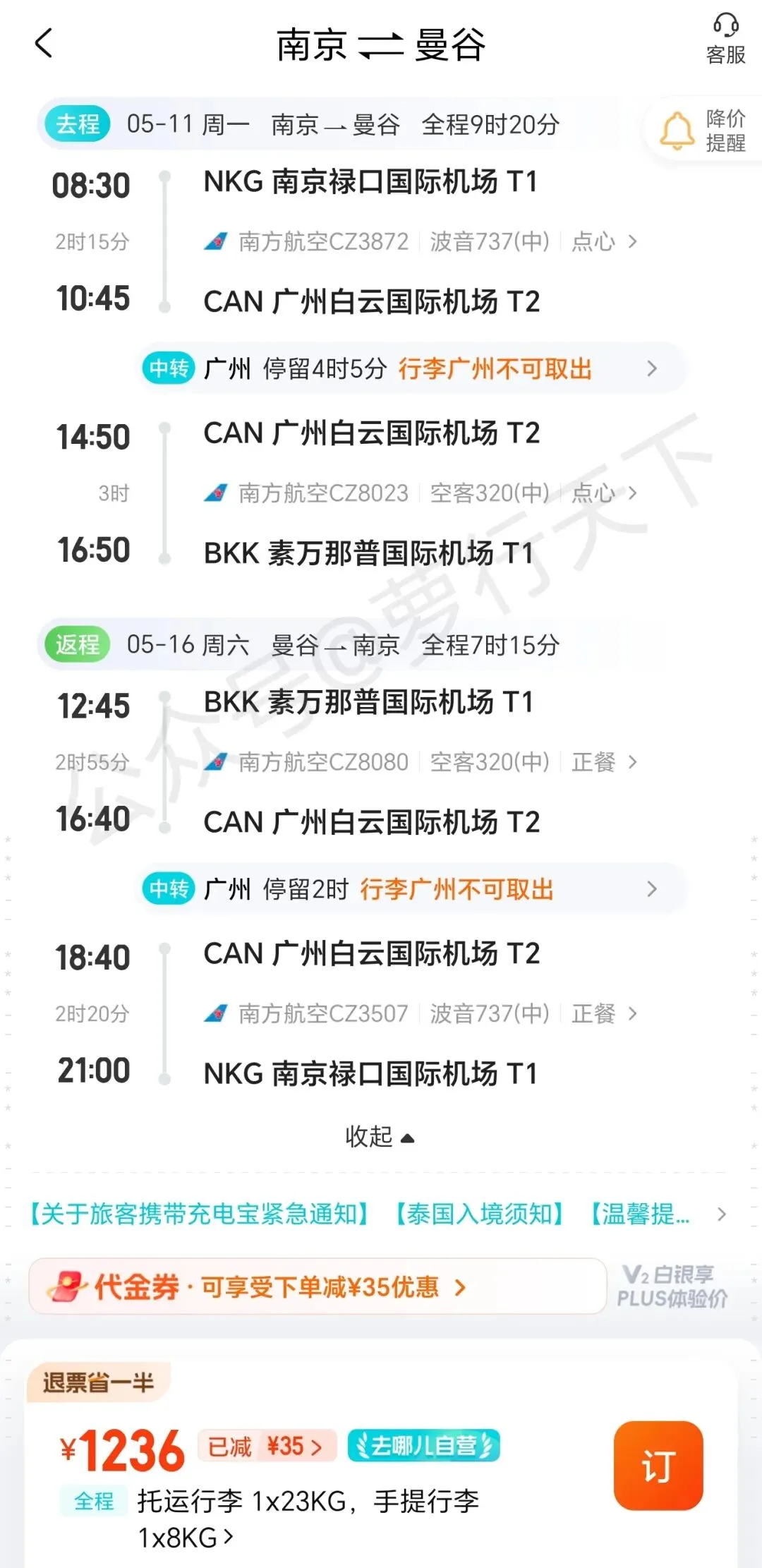 >机票 | 南京往返泰国曼谷低至1K2