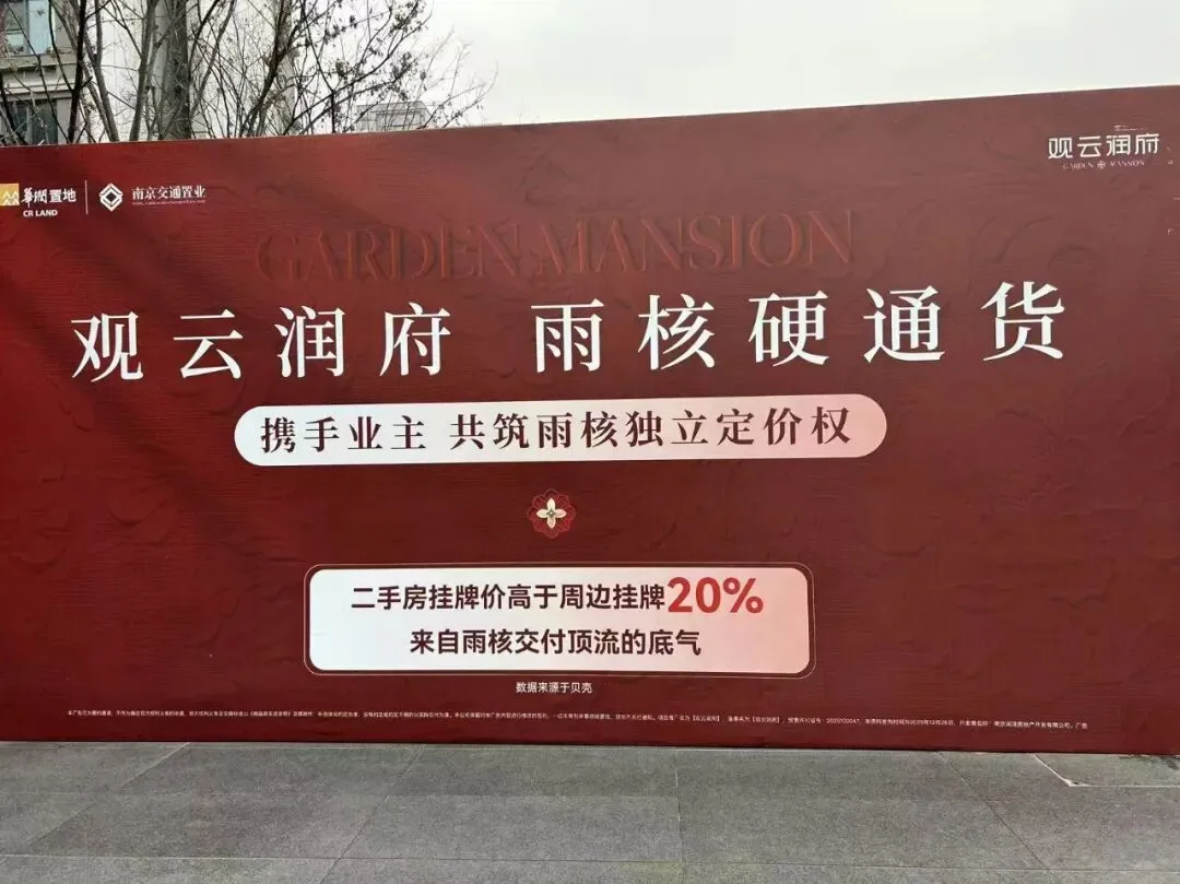 随着雨花各个新小区交付和交付后的二手房成交,我们再把热门小区调回雨花台区。今天我们介绍的热门小区就从一个霸气的宣传口号开始——二手房挂牌价高于周边挂牌20%,来自雨核交付顶流的底气!洋房在寸土寸金的雨核板块是一个稀缺产品,大家有目共睹的在该项产品上取得成功的第一个雨核洋房产品是中海城南公馆中海城南公馆的洋房都是大面积的(最小也是130㎡起),至今的成交价格都保持在3万+的单价。一边洋房、一边高层,中海已经成功打样了;华润只需要有样学样就可以,所以我们看到华润观云润府的布局也是西边洋房,东边高层!基本成功了