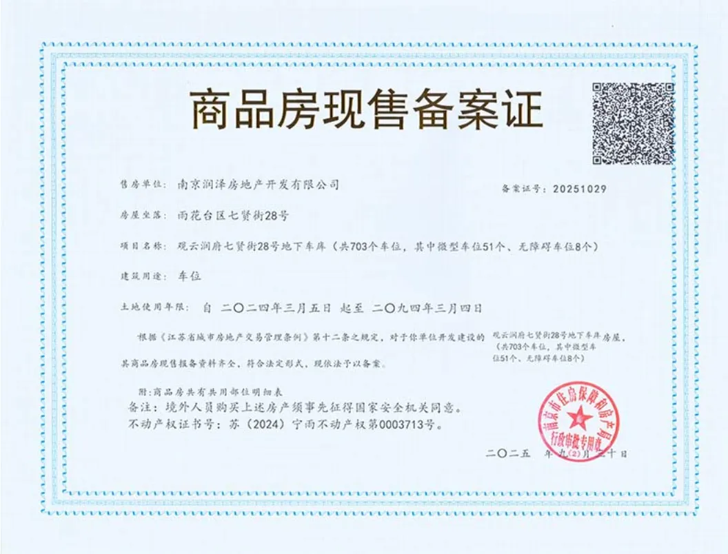 观云润府土地使用年限2024年3月5日——2094年3月4日,一共70年产权;首次对外开盘的时间是2024年3月19号,开盘的价格是:45100元/㎡(洋房)