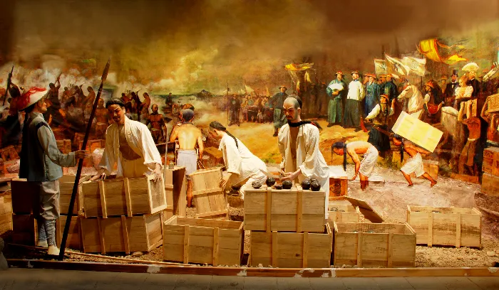 鸦片战争前的中国社会,正处于封建社会的末世。清王朝的统治已经极其腐朽衰败,社会生产力非常落后,基本上仍处于自给自足的自然经济状态。而此时西方国家的资本主义已经得到充分的发展,英国的工业发展水平最高。他们为了开辟国外市场,推销工业产品,掠夺廉价的工业原料,开始把侵略的魔爪伸向我国。他们以鸦片烟作为打开中国大门的武器,向中国大肆倾销,致使我国的白银大量外流,造成清政府严重的财政危机。鸦片烟同时严重损害了广大吸食者的身体健康,军队中吸食鸦片的情况也十分普遍,使部队严重丧失战斗力。鸦片给中国社会带来了一系列严重的社会问题。当时,以林则徐为代表的有识之士,纷纷要求禁烟,采取措施,严查殖民主义者的鸦片走私活动。江苏的邓廷桢(今南京人)、关天培是林则徐的积极支持者。