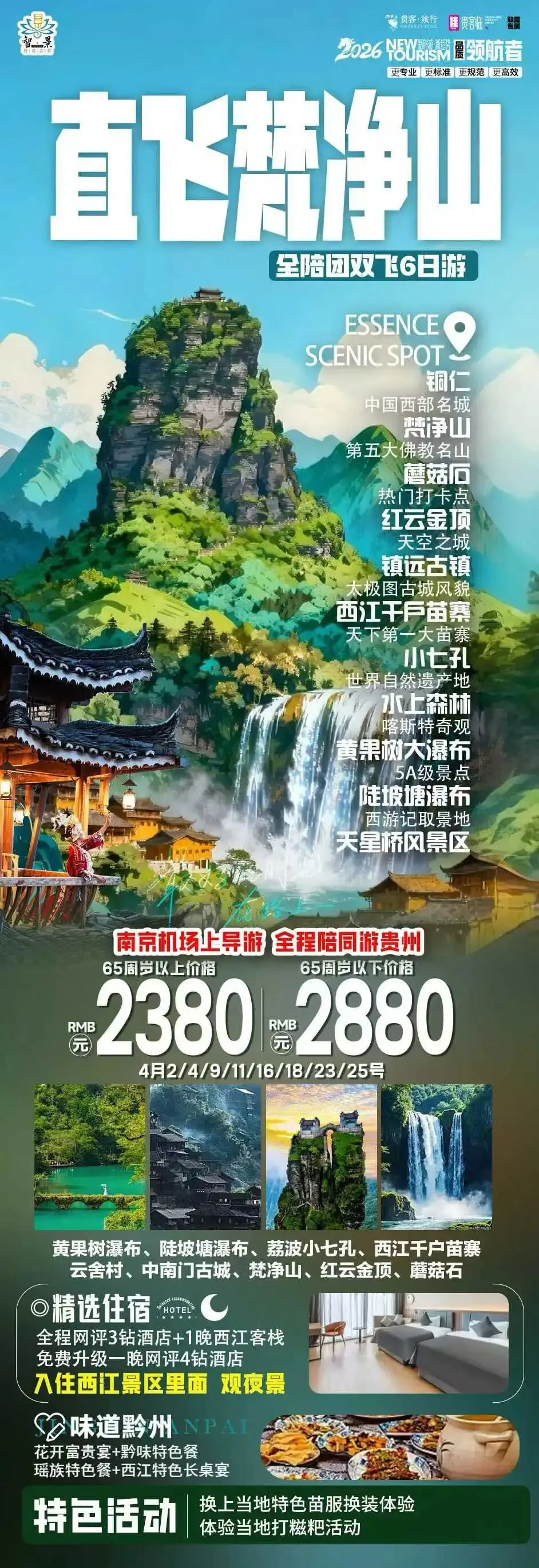 南京直飞梵净山🉐2380起