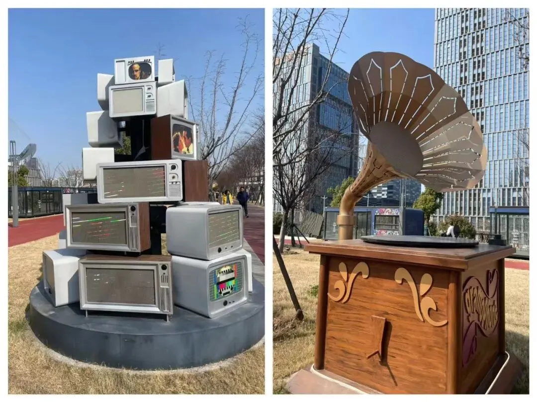 当然,一些老式电视机、留声机的小品,似乎还展示着这个街区的独特。