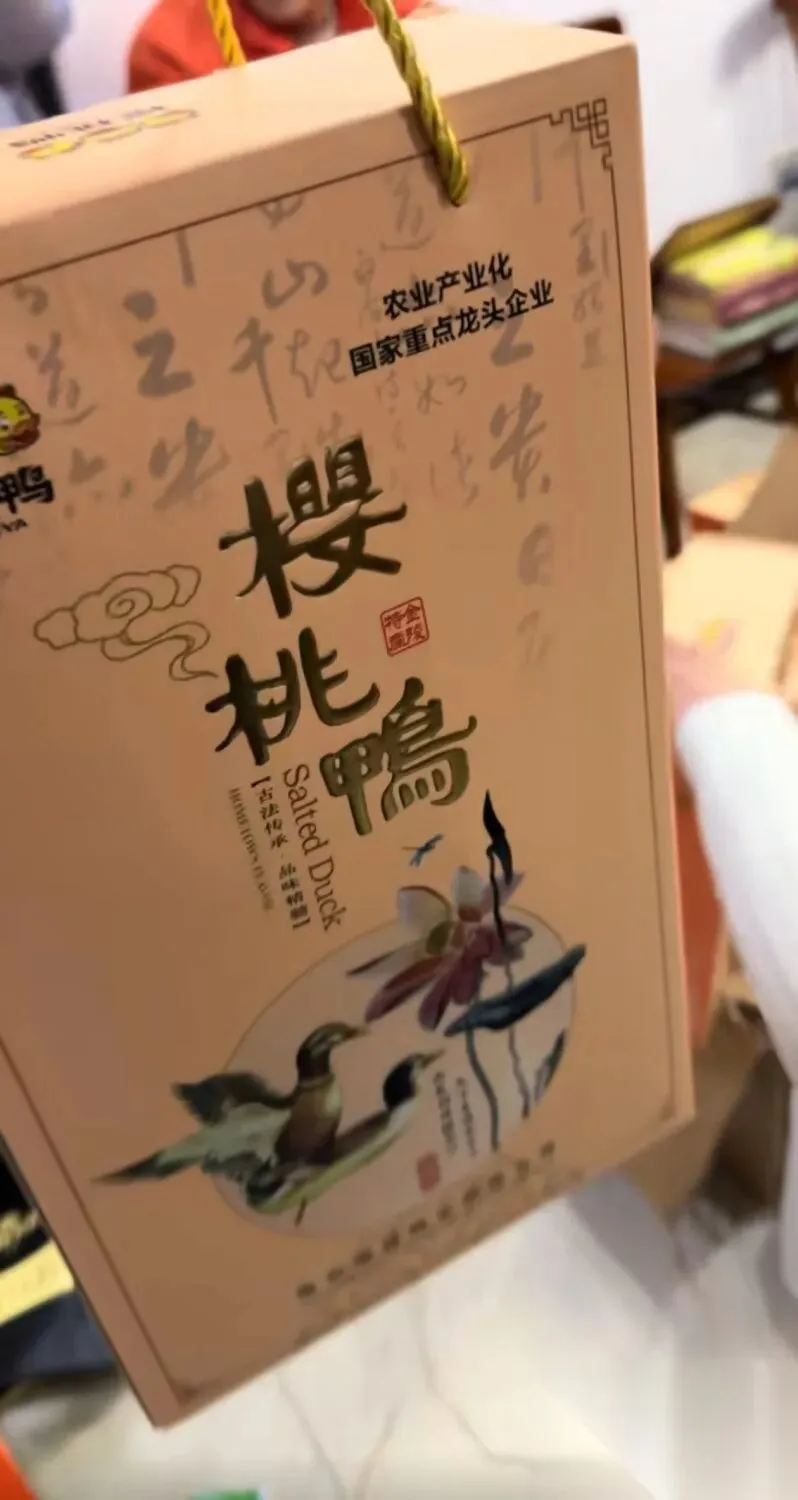 她手上提着几盒包装精美的樱桃鸭,那可是南京的特色,显然是精心挑选的礼物。