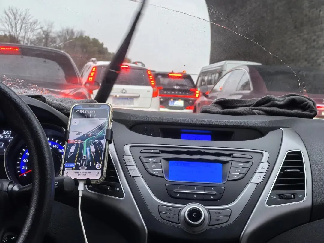 进市区时,一个红绿灯路口,我们硬生生堵了30多分钟,寸步难行。