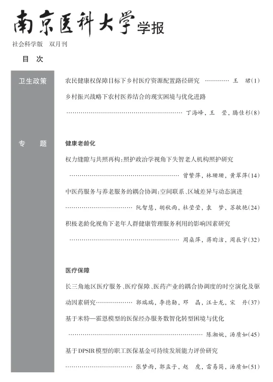 《南京医科大学学报(社会科学版)》2026年第1期目录速览