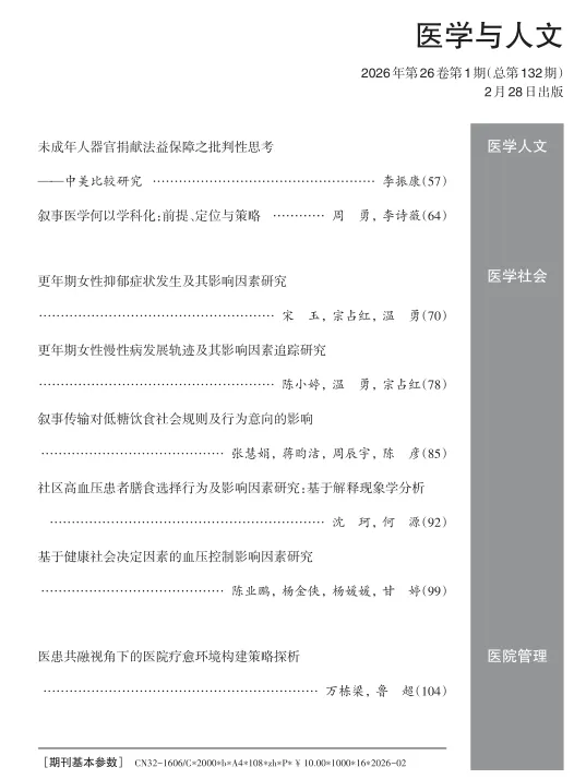 >《南京医科大学学报(社会科学版)》2026年第1期目录速览