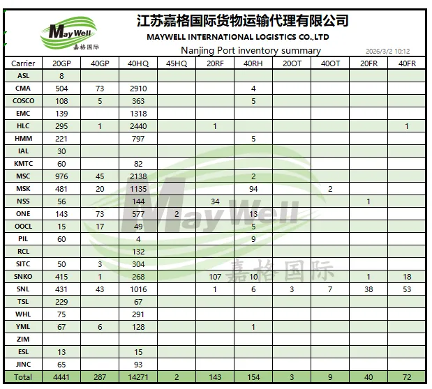 南京港口各船公司集装箱盘存/ NANJING