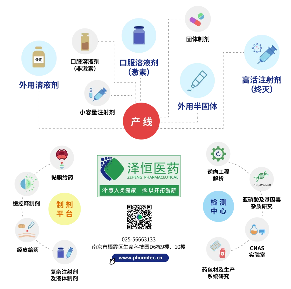 南京泽恒医药技术开发有限公司,主要从事改良型制剂和高端仿制药物(含一致性评价)的研发、生产和销售,专注于急救、儿童、心血管系统、神经系统等领域用药。公司拥有国家级专精特新小巨人企业、国家高新技术企业、南京市瞪羚企业、江苏省专精特新中小企业、南京市儿童用药工程技术研究中心、南京市黏膜给药制剂工程研究中心等荣誉资质。公司为江苏省首批MAH生产许可证(B类)获得企业,建立了完整的MAH全生命周期管理体系,与国内多家知名药企建立了CMO/CDMO关系。