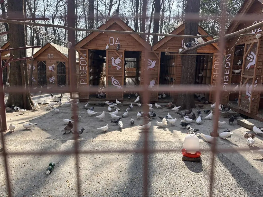 笼子外面围了一圈小朋友,小手伸进栅栏缝隙,试图把食物塞进去。可里面的鸽子们似乎刚刚饱餐一顿,对递进来的美食爱答不理,看来是真吃饱了。