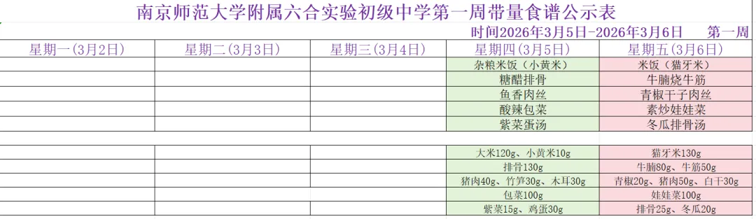【每周食谱】南京师范大学附属六合实验初级中学每周食谱