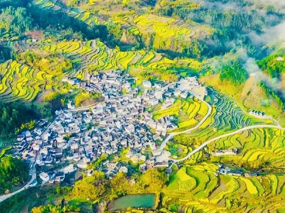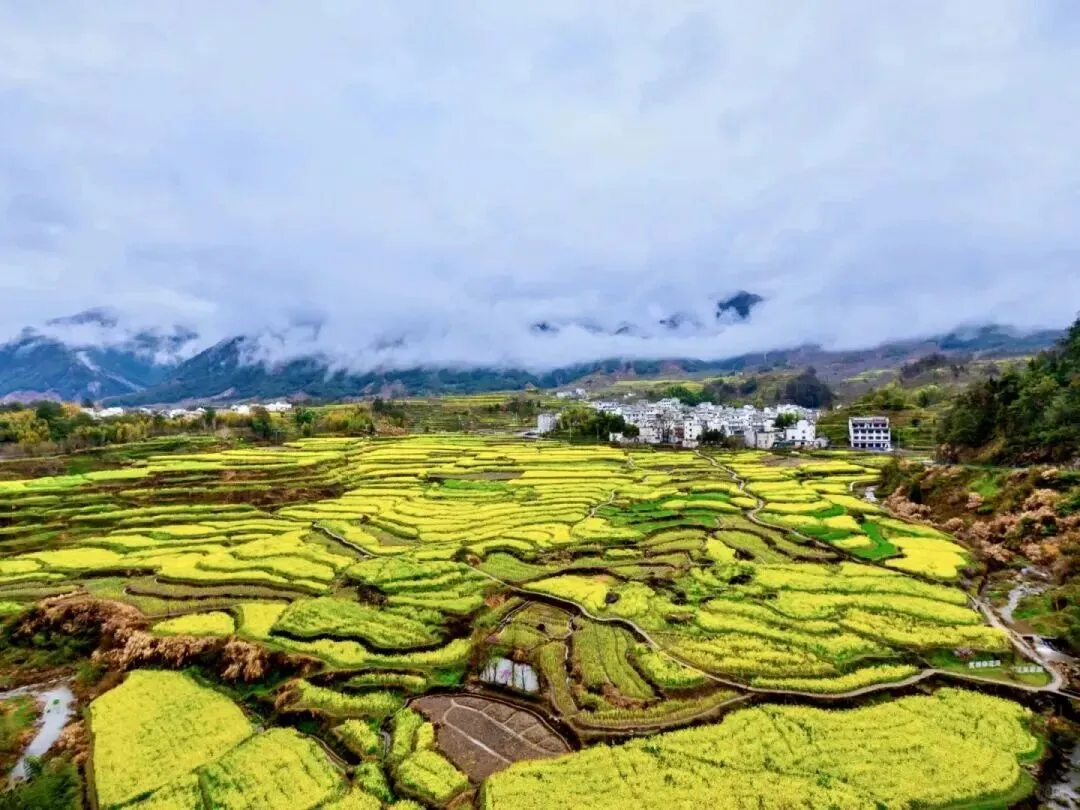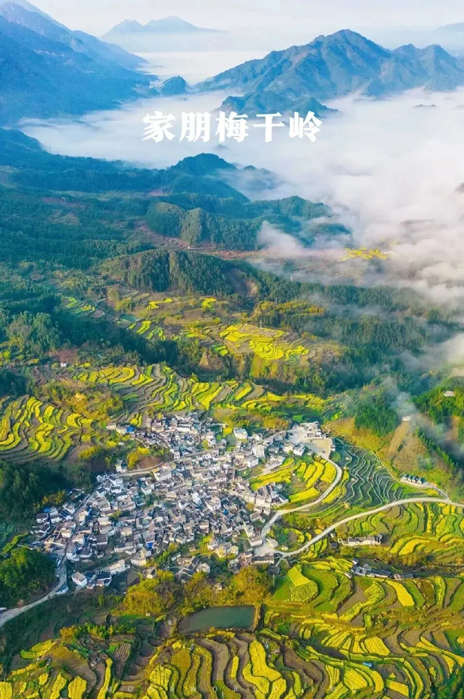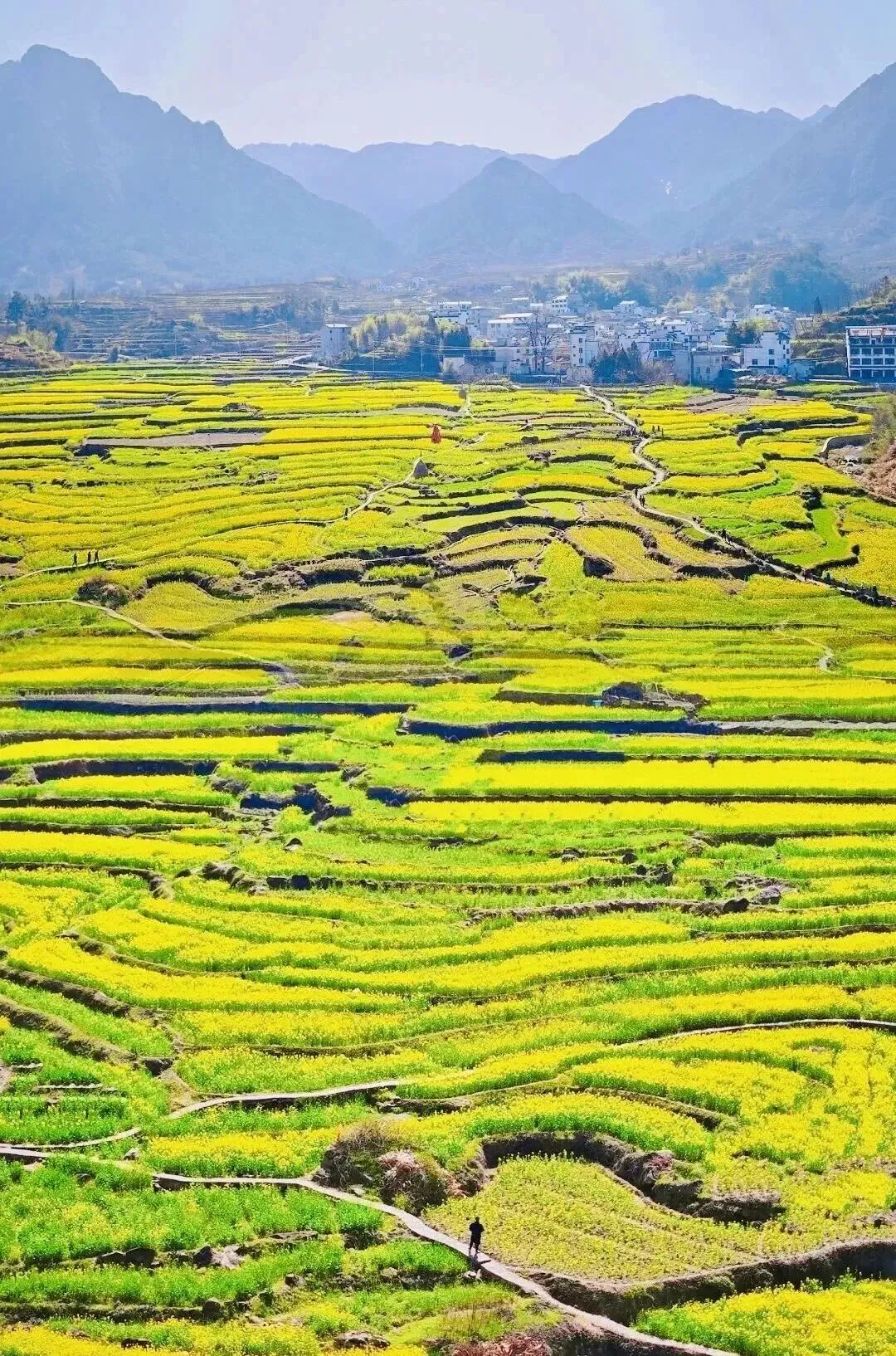 我国十大古道之一全程14公里山路 累计爬升约400米- 徽杭古道 -安徽十大网红赏花地被人们称是一座“藏起来的花海梯田” 安徽著名摄影创作基地 - 家朋油菜花 - 层层叠叠的油菜花梯田顺山势而下金灿灿的油菜花与徽派古村落交相辉映周末二日|无须请假小众避世的古村落