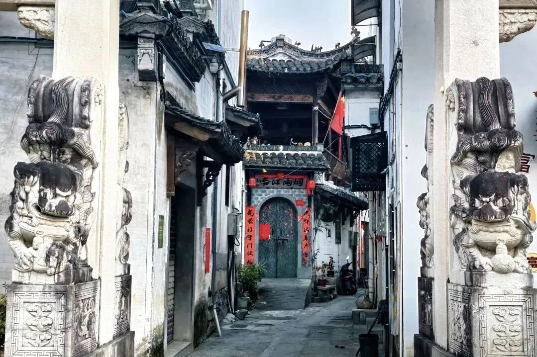 🔷整个龙川景区不大,一条水街穿村而过,祠堂、牌坊、古桥分立在水街两旁。🔷从高处俯瞰,整个龙川村形似一条龙舟,呈一叶扁舟形,又有“船形村”之称。🔷龙川水街两岸是传统徽派建筑群—宗祠、牌坊、名人故居保存完好,差不多2小时就能走完。🔷村口的石拱桥、村尾的石板桥,村中间村民日常往来的木头桥,拍照打卡非常出片。🔷沿着河堤一直走,走到村外,有一座横跨登源河的狭长木桥也很出片。
