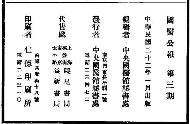 ▲1931年9月《南京市国医公会杂志》第1期封面、1932年1月《南京市国医公会杂志》第3期封面 源自孔夫子旧书网