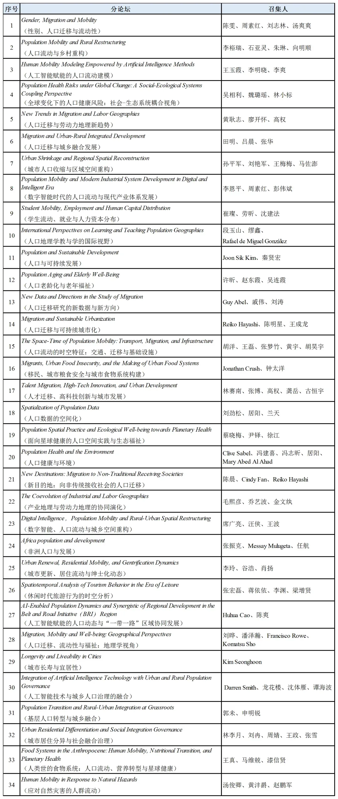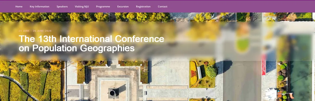 第13届国际人口地理大会(International Conference on Population Geographies,ICPG)将于2026年6月23-26日在南京举行。自此次大会通知发布以来,得到国内外相关领域科研教学团队广泛响应,围绕“人口转型时期的人口地理(Population Geographies in an Era of Demographic Transition)”的会议主题积极申请大会专题分会场。经大会组委会审查,确定34个分论坛面向参会者征集论文(报告)。诚邀国内外学者及研究生积极参会,共同探讨全球与区域人口变化的前沿议题,分享最新研究成果,推动人口地理学科发展。