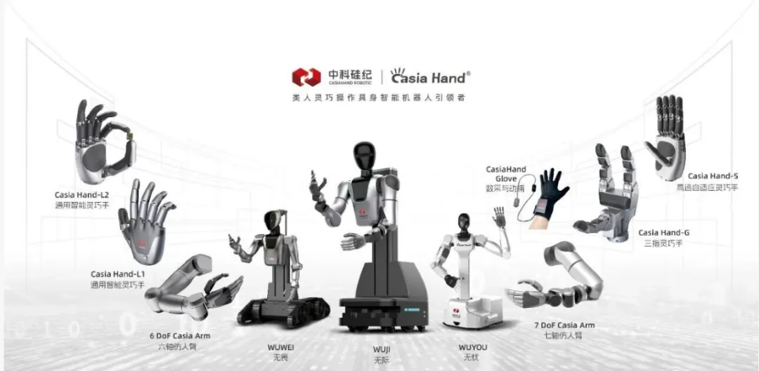 中科硅纪成立于2023年,是一家孵化自中国科学院自动化研究所——我国具身智能领域“国家队”的硬科技企业,专注于通用类人灵巧操作技术及全栈解决方案的研发与产业化。公司构建了覆盖“整机—核心部件—算法模型—应用场景”的完整技术体系,已推出Casia Hand系列行业级灵巧手产品矩阵,包括面向家庭服务的三指仿生手、面向3C电子精密装配的高速工业手(其关节角速度达720°/秒、使用寿命超百万次)等四款差异化产品。该系列产品已于2025世界机器人大会上集中亮相,凭借100%核心零部件国产化、多场景适配能力及国际领先性能指标。已形成系列化、规格化、场景化布局的灵巧手产品体系。