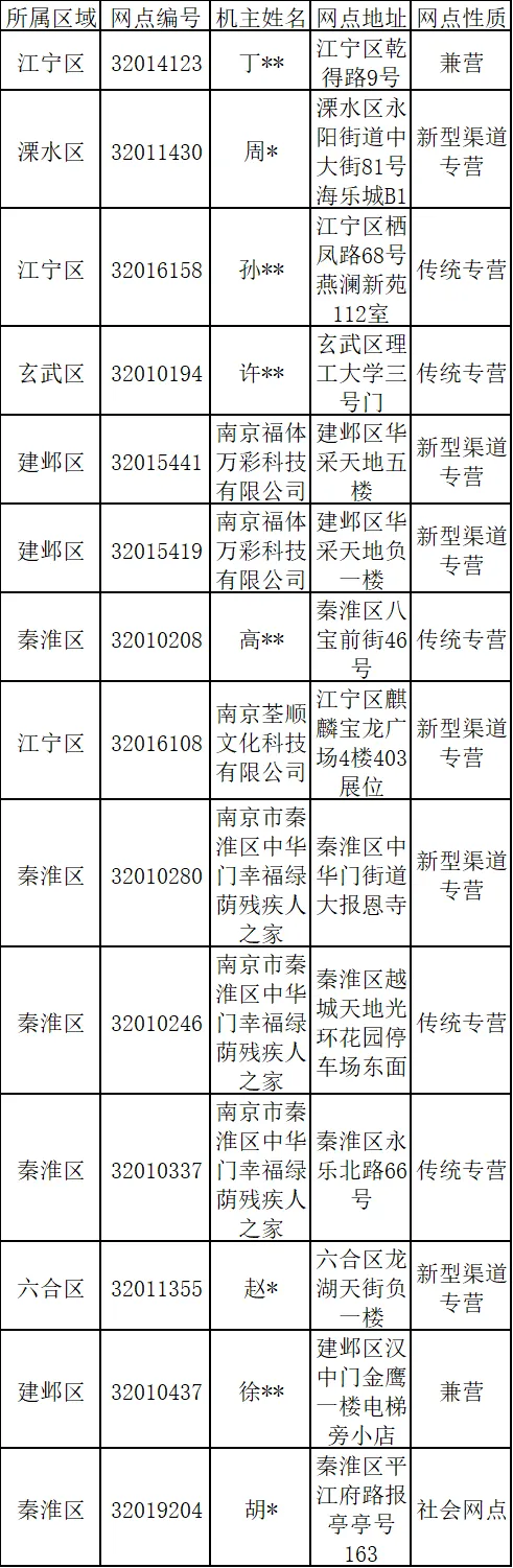 为促进南京市福利彩票市场健康发展,满足我市购彩需求,根据新增站点有关规定,由申请人自愿申请,经市区两级福彩中心考察,符合新增条件。现将有关情况公示如下: