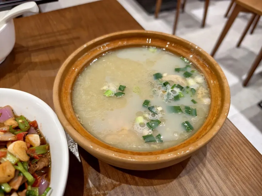 吃江西菜肯定得来个皮蛋肉饼汤啊,之前去吃南昌拌粉就没喝到,没想到在这喝到了,爱吃皮蛋星人表示很好喝啊,皮蛋的蛋黄都融进汤里,蛋白炖得黏黏糊糊,肉饼做得也很正宗,与江苏这边吃的狮子头口感完全不一样。