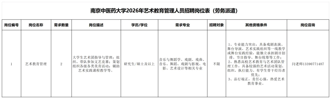 3.具有适应岗位要求的身体条件,能从事艺术教育管理工作;
