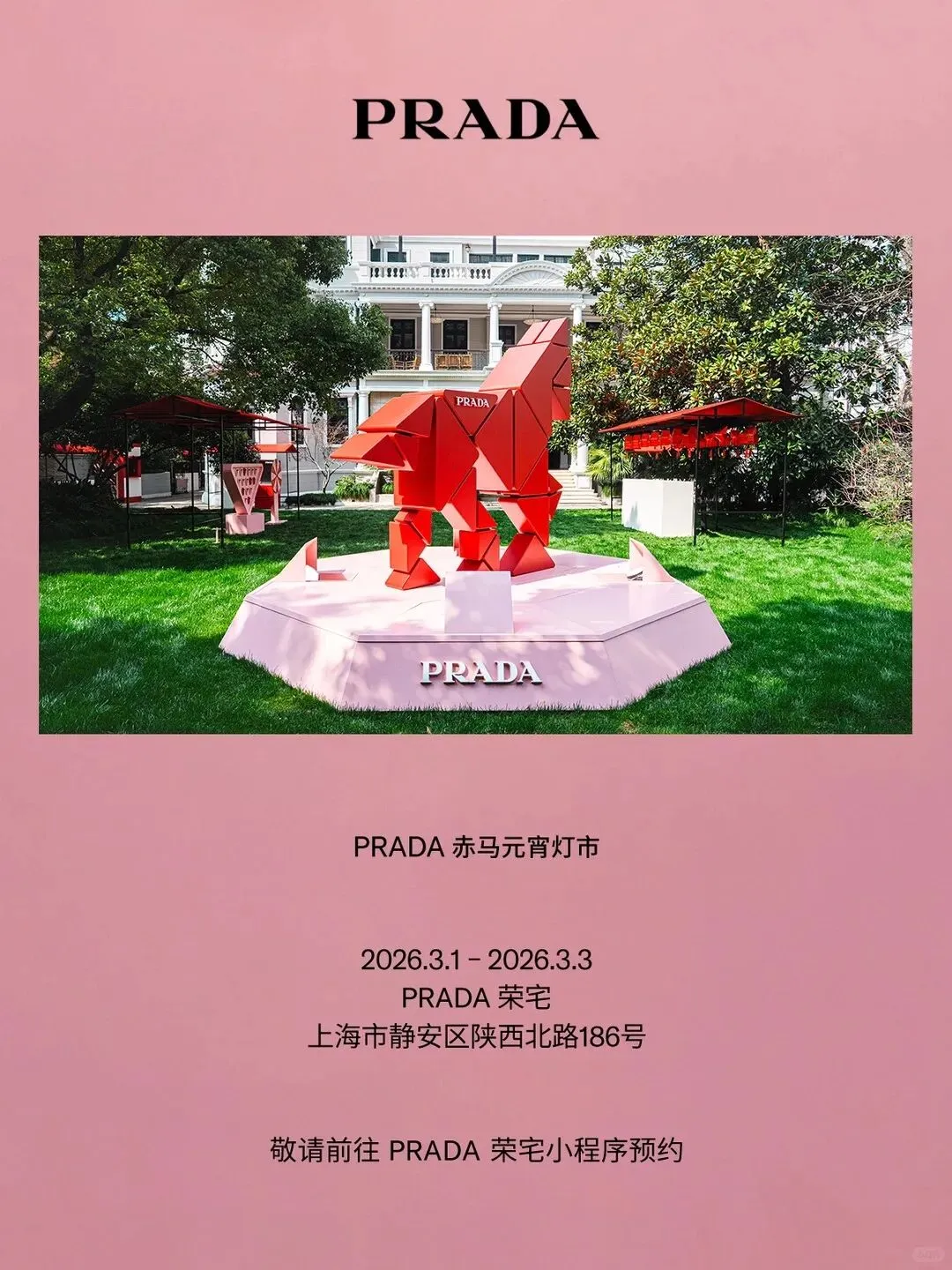 Prada赤马元宵灯市自即日起接受公众预约,并持续开放至2026年3月3日。
