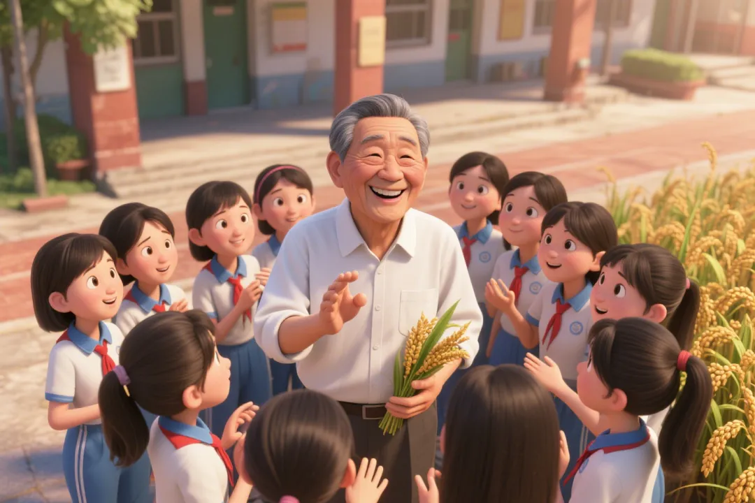 小朋友们,袁隆平爷爷虽然离开了我们,但他的精神永远留在我们心中。他教会我们,要有梦想,更要有为梦想坚持到底的勇气;他教会我们,要珍惜粮食,因为每一粒米饭,都藏着他的汗水与坚守。希望我们都能记住这位稻田里的英雄,努力成长,将来也能像他一样,用自己的力量,去帮助更多的人。我的故事讲完了,谢谢大家!