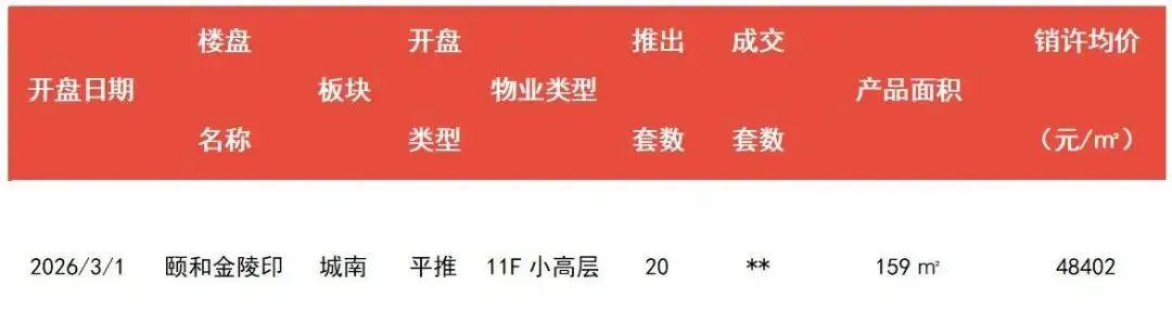 上上周为传统春节假期,南京房管局暂停公布成交与认购数据,因此春节期间南京各项数据均无具体体现,但通过调研开发商看,保利、建发春节期间无成交,招商合计认购16套,联发主力在售项目雨花新澍春节期间认购1套,华润认购7套,金基仅山和月认购1套;从分板块来看,河西区域仅瑞玺有2套成交(实际也是节前锁定),南站片区仅铂萃云湾成交2套;南部新城区域云尚紫薇成交2套(实际为工抵),2026年春节假期南京新房市场整体成交寥寥,属于典型的节日淡季行情。