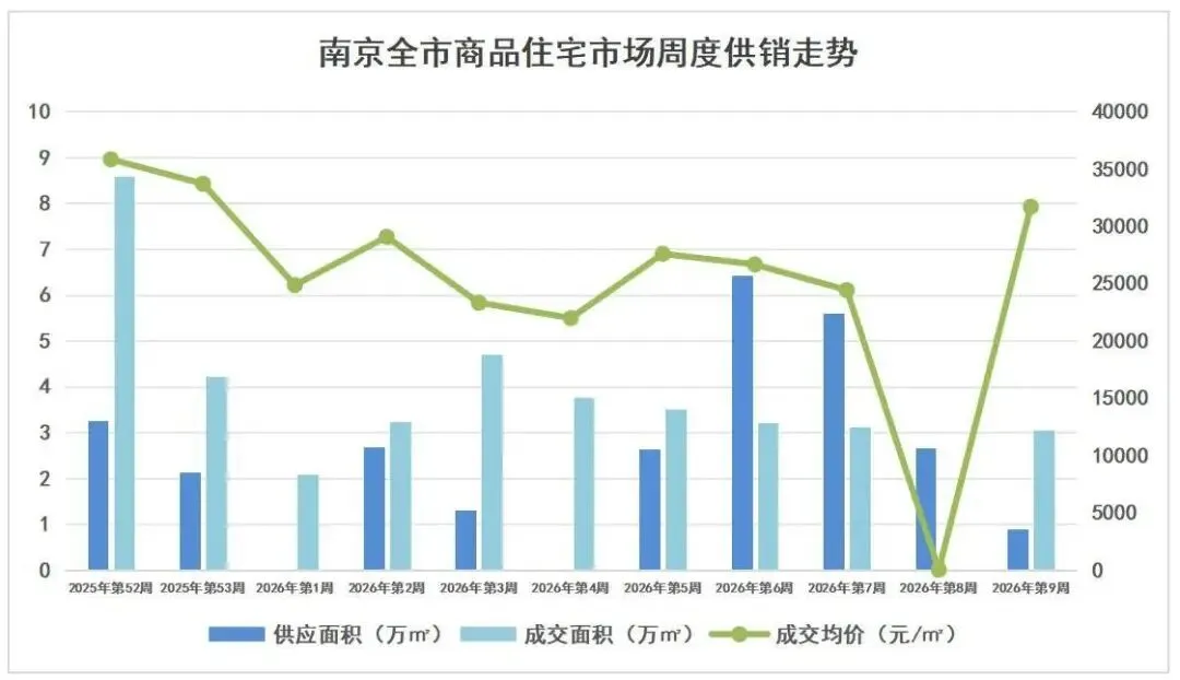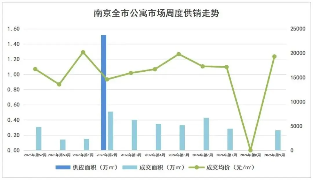 南京楼市2026年第9周:节后首周市场表现平平,成交量降幅明显,成交价格呈现结构性上涨.