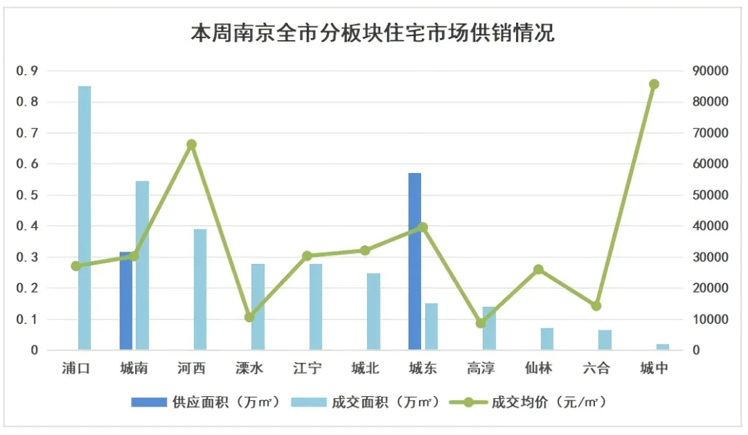 上周各板块均表现平平,浦口板块以63套领先,占全市27.4%,但也仅有金基山川江樾成交上双(13套),其他项目成交均为个位数;城南以50套位居第二位,其中联发雨花新澍单项目成交34套;其他板块则成交均在30套以内,其中仙林、六合等板块成交个位数。