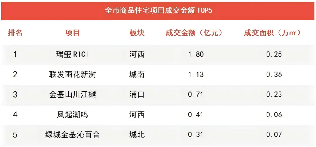 ▶瑞玺RICI以1.8亿元位居商品住宅周度成交金额排行榜TOP1。