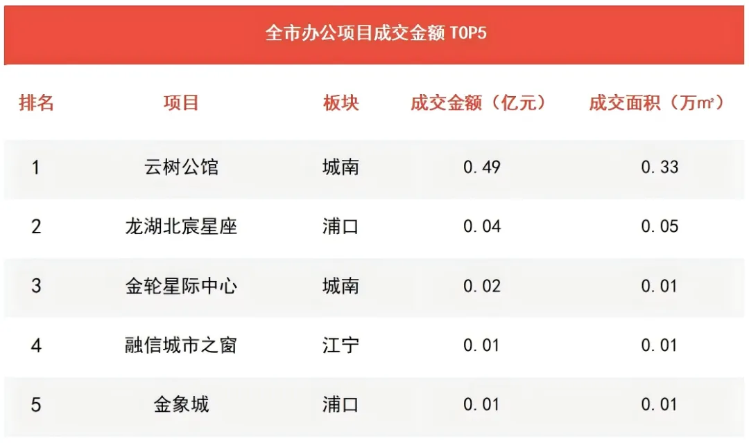 ▶云树公馆项目以4945.68万元成为周度办公成交金额TOP1。