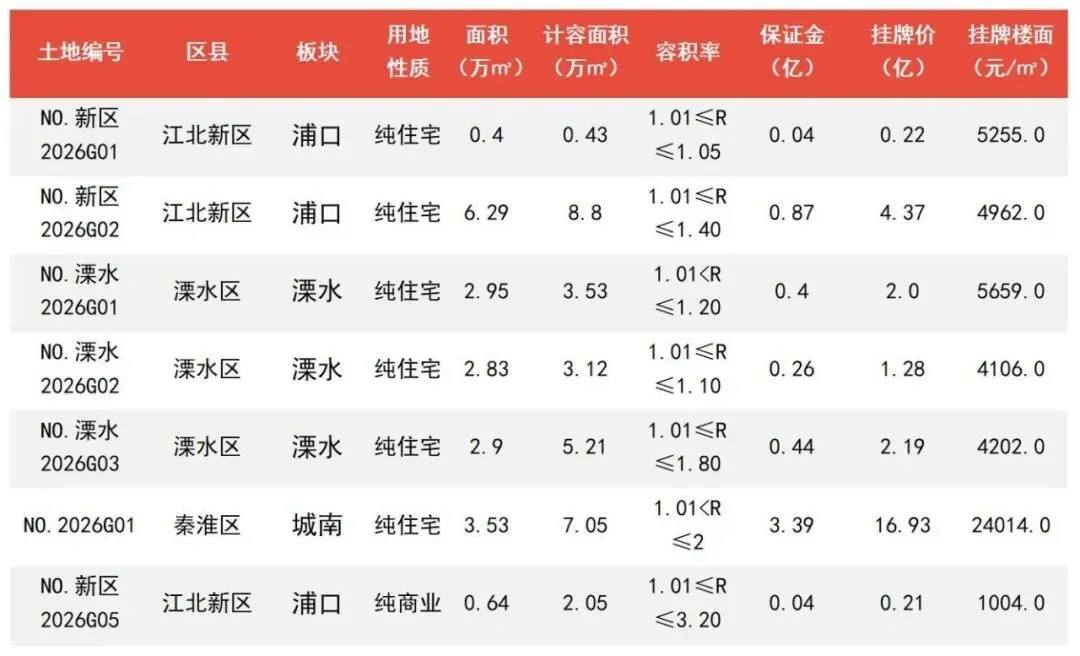 2月28日,南京土储分4批次共计推出7幅地块,用地面积约19.53万㎡,起拍总价27.2亿元,7幅地块中有6幅为纯住宅用地,分别位于江北新区、溧水以及秦淮的大校场三个区域。