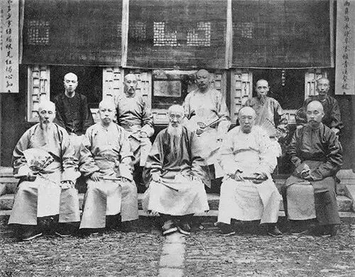 1904年,南京,张之洞(中)、盛宣怀、缪荃孙、张謇等十人的合影照。