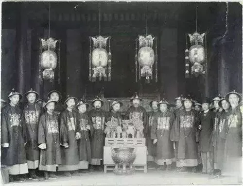 1907年,南京,清廷高官端方及僚友与青铜器合影。