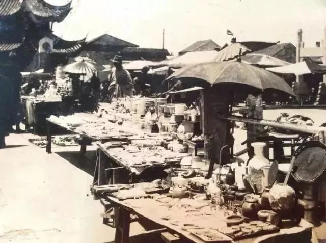 1920年,夫子庙前的古玩摊,紫砂壶,白玉瓶。