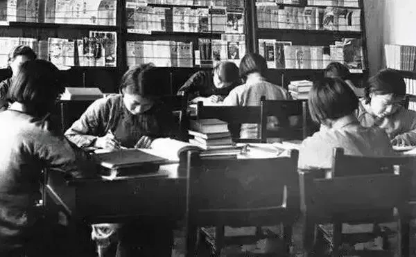 1932年,金陵女子文理学院图书馆,正在看书的女学生。