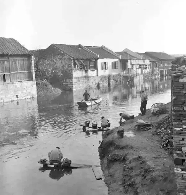 民国时期,在秦淮河里洗衣的妇女。