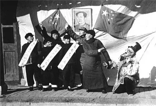 1952年,南京市老残院在街头演出自编自演的活报剧。晓庄/摄。