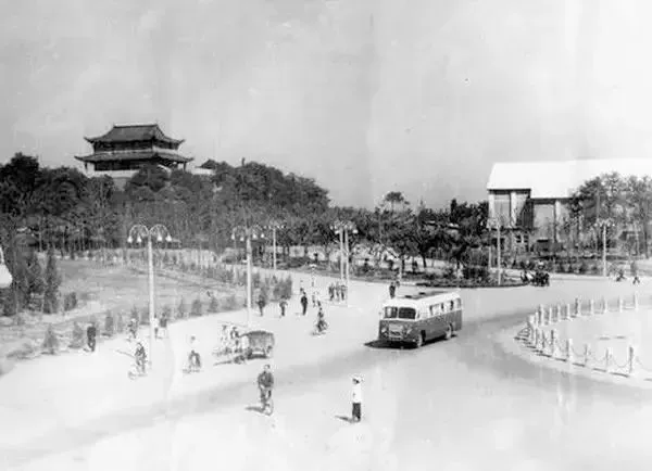 1958年,新建成的鼓楼广场及西北角面貌。