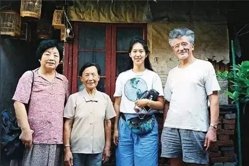 1995年,张纯如(右二)来到南京,采访南京大屠杀幸存者夏淑琴(左二)。