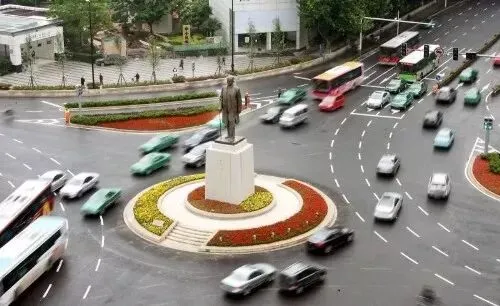 2010年,南京新街口,孙中山铜像回迁入新街口转盘。