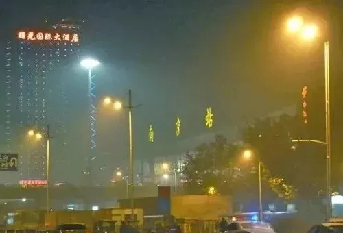 2013年12月4日晚,处于雾霾中的南京火车站。