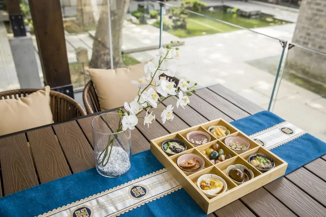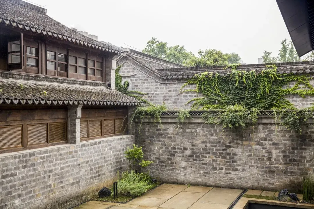 曾经的三官堂保留了遗址部分的山墙、地垄墙,利用现代的建筑材料,修旧如今,被打造成了酒店的餐厅“花间食”。你可以在这里品尝到各式南京美食,更能感受历史在这里留下的肌理。
